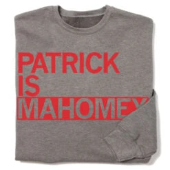 Patrick Is Mahomey. A Portion of All RAYGUN Sales Raise Money For Organizations That We Support. Red Screen Print on a Deep Heather Sweatshirt (52% Combed Ringspun Cotton / 48% Polyester). Cut and sewn sweatshop free. Designed and printed by Union Labor at RAYGUN.
