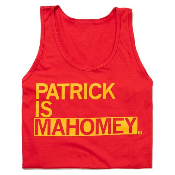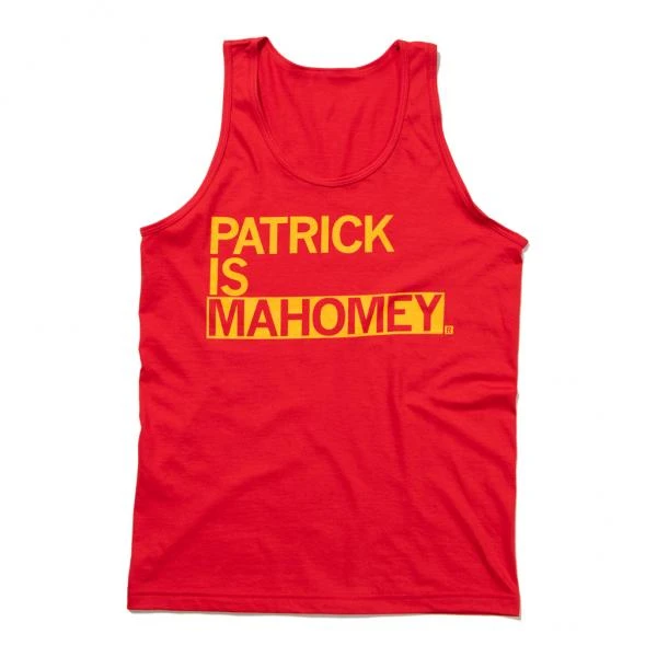 Patrick Is Mahomey. Gold Screen Print on a Red Tank Top (100% Combed Ringspun Cotton). Cut and sewn sweatshop free. Designed and printed by Union Labor at RAYGUN.