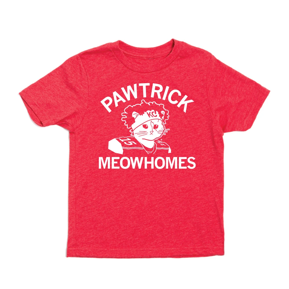 Pawtrick Meowhomes: cat got your Lombardi? White Screen Print on a Heather Red T-shirt (60% Combed Ringspun Cotton / 40% Polyester ). Cut and sewn sweatshop free. Designed & printed by Union Labor at RAYGUN.