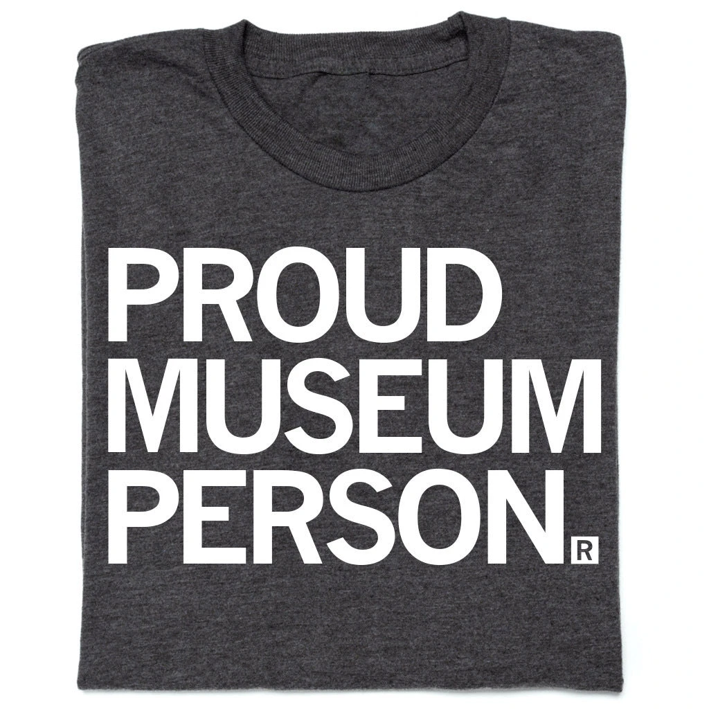Proud Museum Person. Some proceeds from this shirt benefit Association of Midwest Museums, who we partnered with on the original version of this design back in 2017 (and we still sell that version too). This version is helping celebrate their 2025 Crossurrents Conference, which brings them back to Iowa.