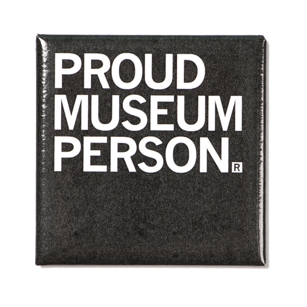 Proud Museum Person. 2″ x 2″ Metal Magnet. Designed by RAYGUN and made by union labor at Garner Printing in Des Moines, IA.