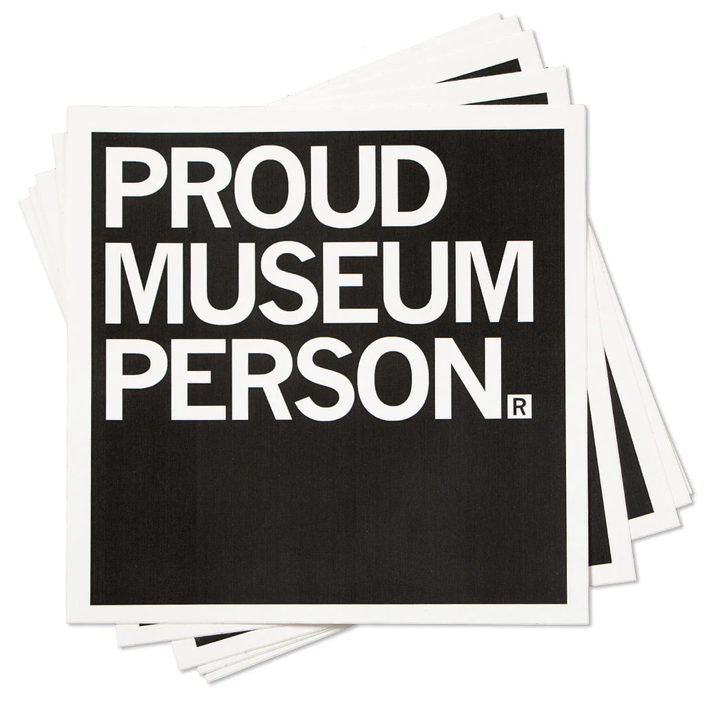 Proud Museum Person. 4″ x 4″ Vinyl sticker. Designed by RAYGUN and printed by union labor at Garner Printing in Des Moines, IA.
