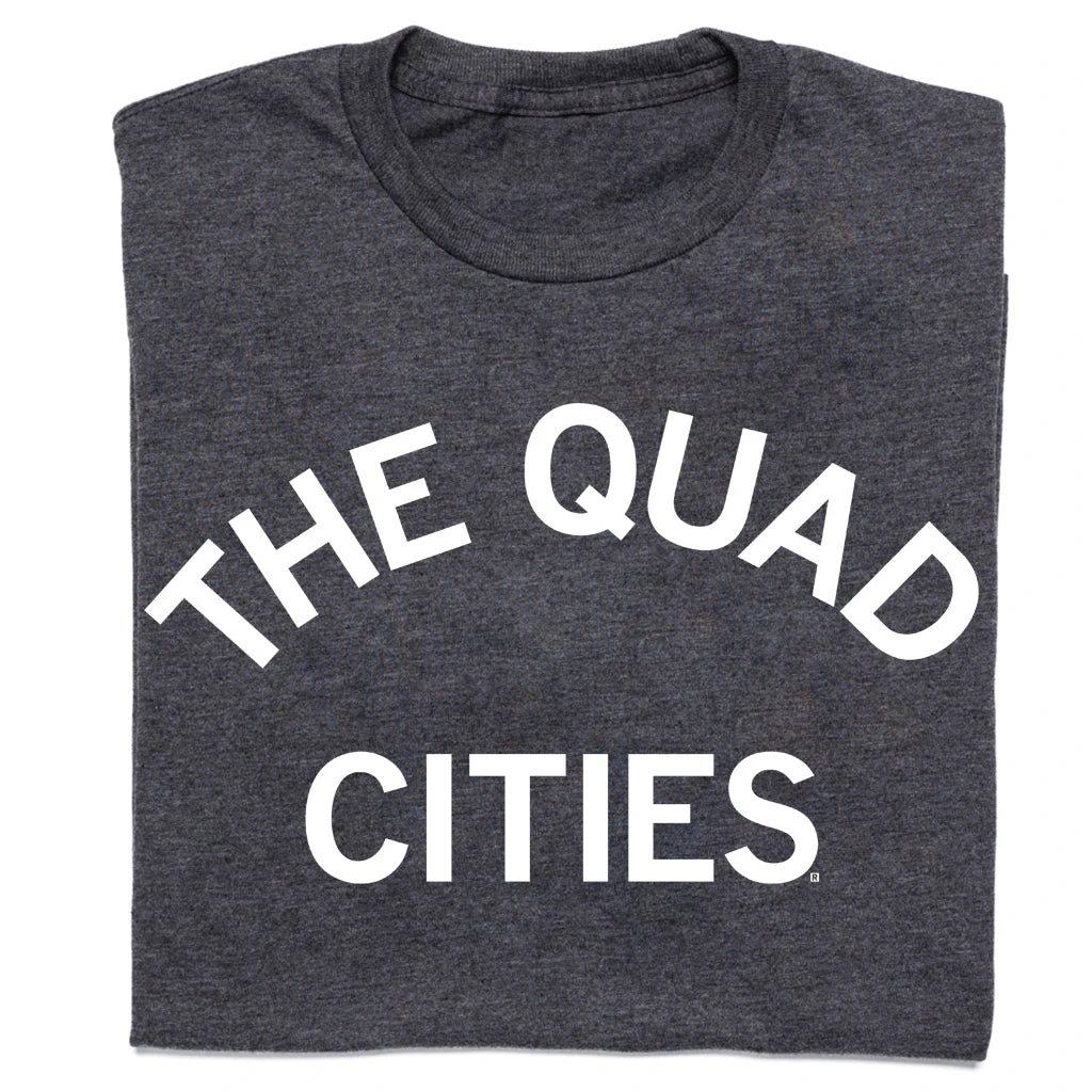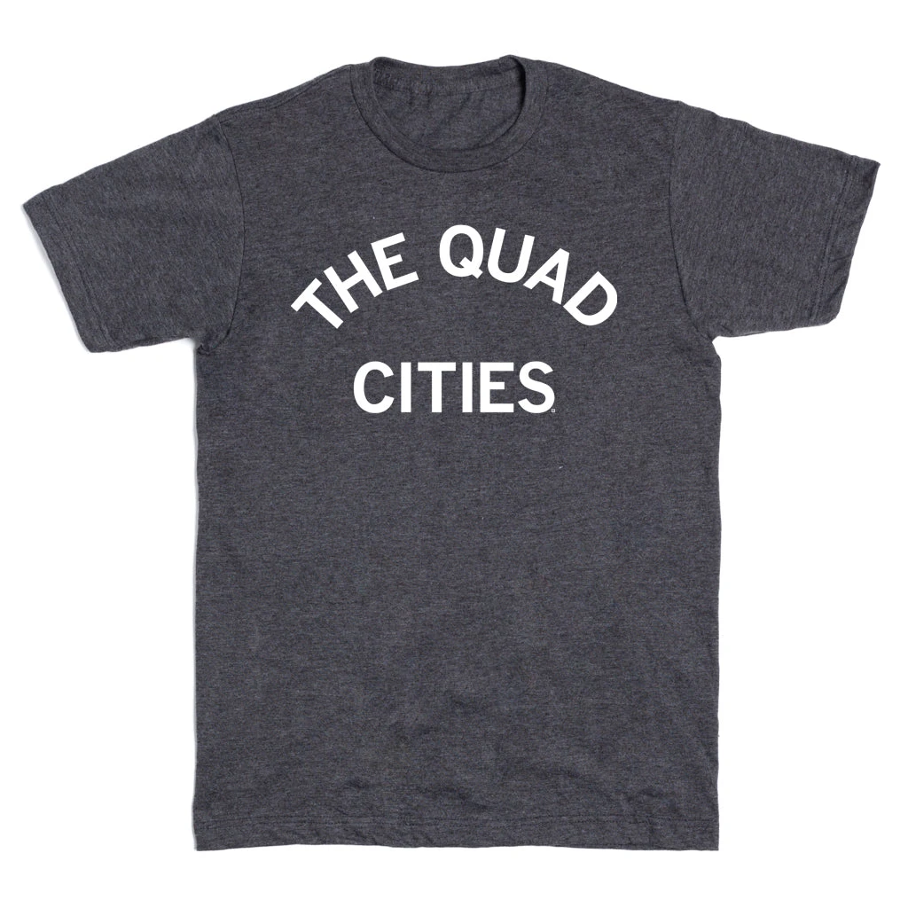 The Quad Cities. A Portion of All RAYGUN Sales Raise Money For Organizations That We Support. White Screen Print on a Charcoal T-shirt (50% Cotton / 50% Polyester). Cut and sewn sweatshop-free. Designed and printed by Union Labor at RAYGUN.