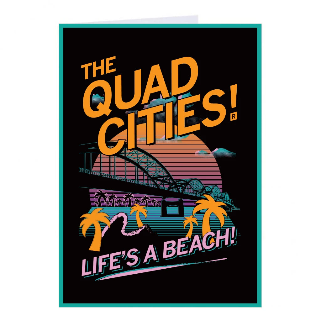 The Quad Cities: Life’s a Beach. A Portion of All RAYGUN Sales Raise Money For Organizations That We Support. 5″ x 7″ Folded Greeting Card. Inside of the card is blank and envelope included. Designed by RAYGUN and printed by union labor at Garner Printing in Des Moines, IA.