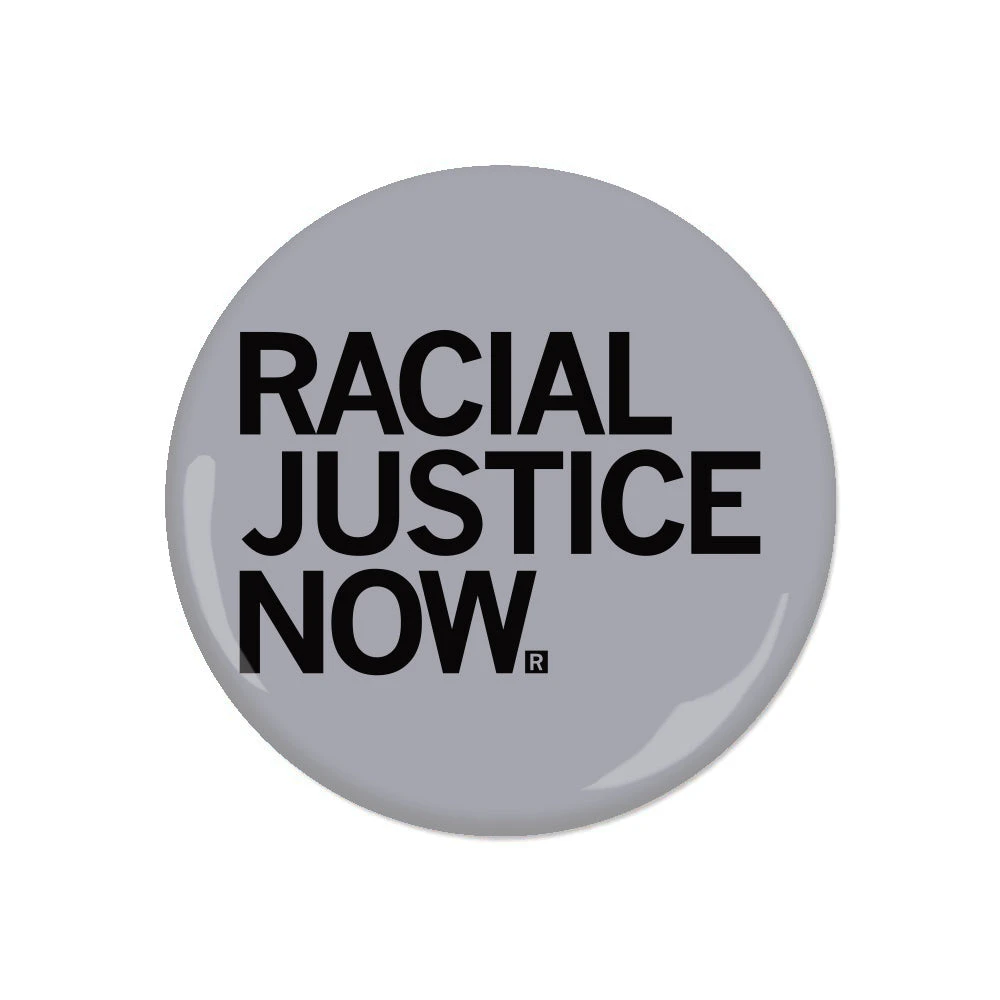 Racial Justice Now. A Portion of All RAYGUN Sales Raise Money For Organizations That We Support. 2.25″ Round Metal Button. Designed by RAYGUN and Made by Badge Bomb LLC.