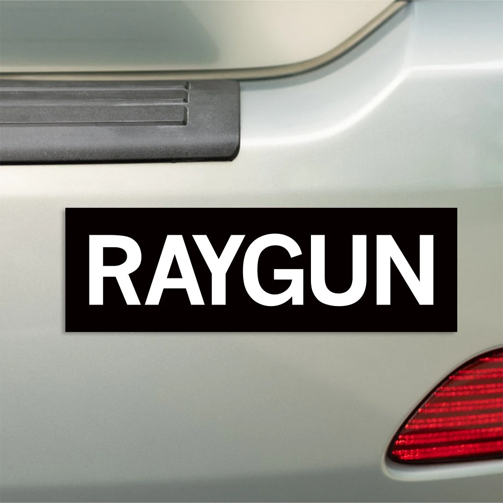 RAYGUN not Ray Gun. A Portion of All RAYGUN Sales Raise Money For Organizations That We Support. 10″ x 3″ Vinyl Bumper Sticker. Designed by RAYGUN and printed by Sinclair Graphics in Des Moines, IA.