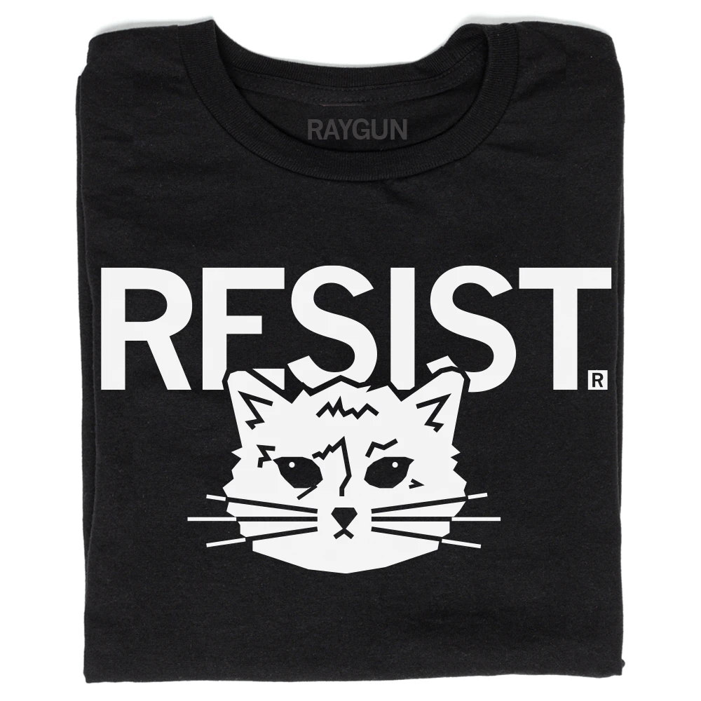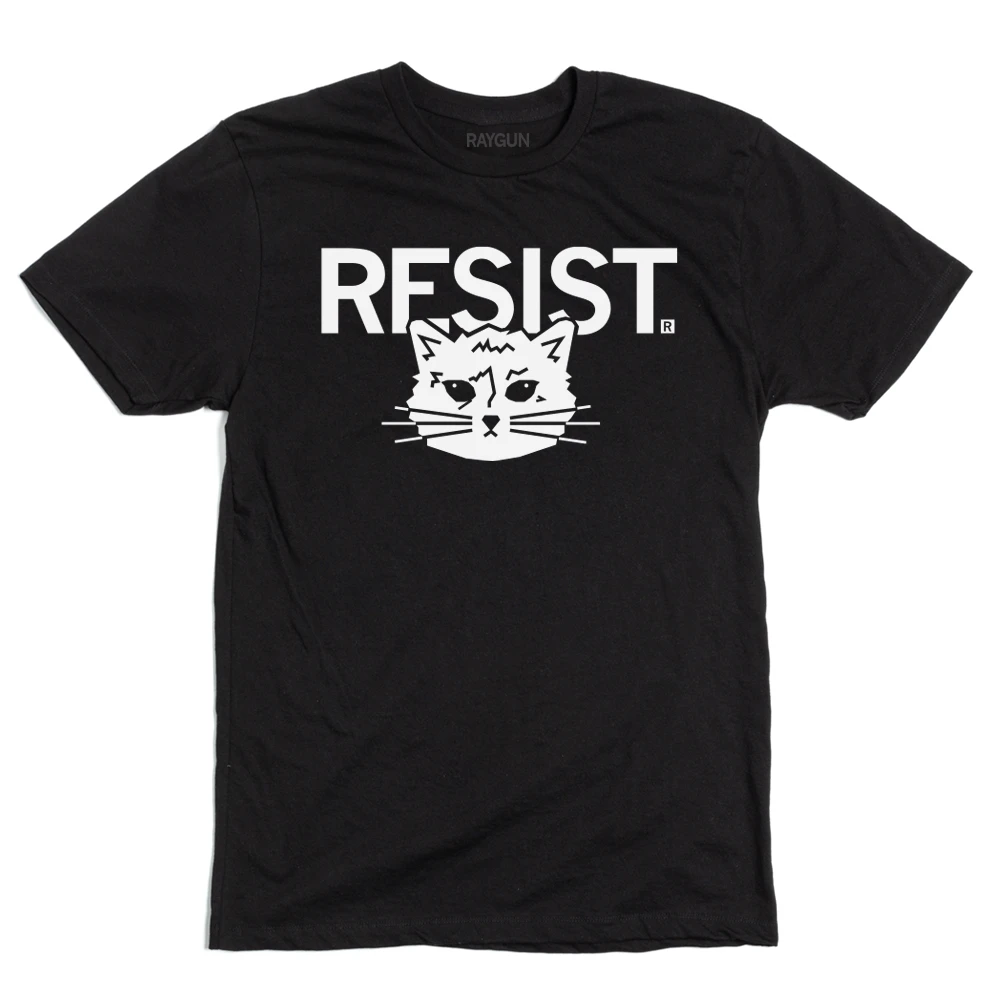 Resist! This Design Has Been Retired and is No Longer Available on Our Sales Floors But Can Be Ordered Here Online! Since All of Our Retired Designs Are Printed on Demand, Please Allow For a Couple Extra Days Before Shipping. A Portion of All Raygun Sales Raise Money For Organizations That We Support. White Screen Print on a Black T-shirt (100% Preshrunk Combed Cotton). Cut and sewn sweatshop free. Designed and printed by Union Labor at RAYGUN.