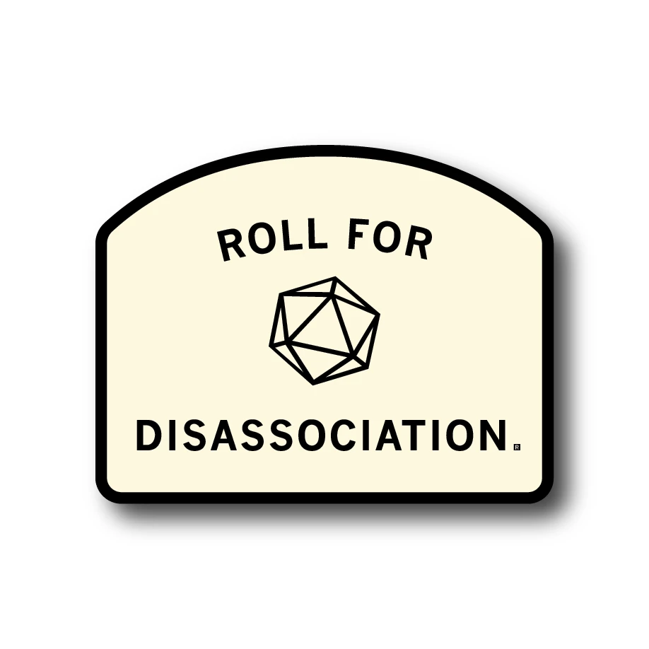 Roll for disassociatoin. A Portion of All RAYGUN Sales Raise Money For Organizations That We Support. Vinyl sticker. Designed by RAYGUN and printed by Sinclair Graphics in Des Moines, IA.