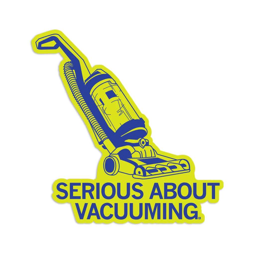 Serious About Vacuuming. Die-Cut Vinyl Sticker. Designed by RAYGUN and printed by Sinclair Graphics in Des Moines, IA.