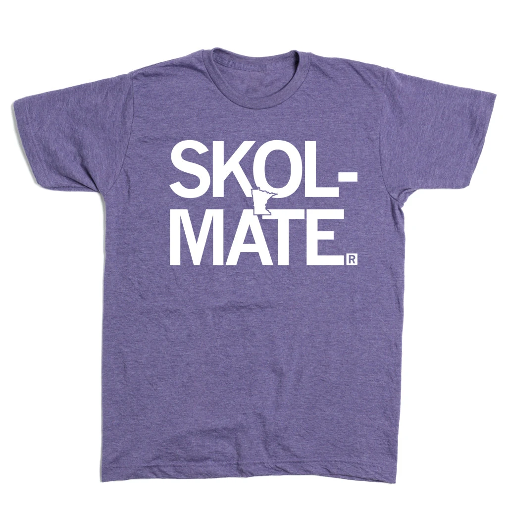 You’re my Skol-Mate. A Portion of All RAYGUN Sales Raise Money For Organizations That We Support. White Screen Print on a Heather Pruple T-shirt (50% Polyester / 50% Combed Ringspun Cotton). Cut and sewn sweatshop free. Designed and printed by Union Labor at RAYGUN.