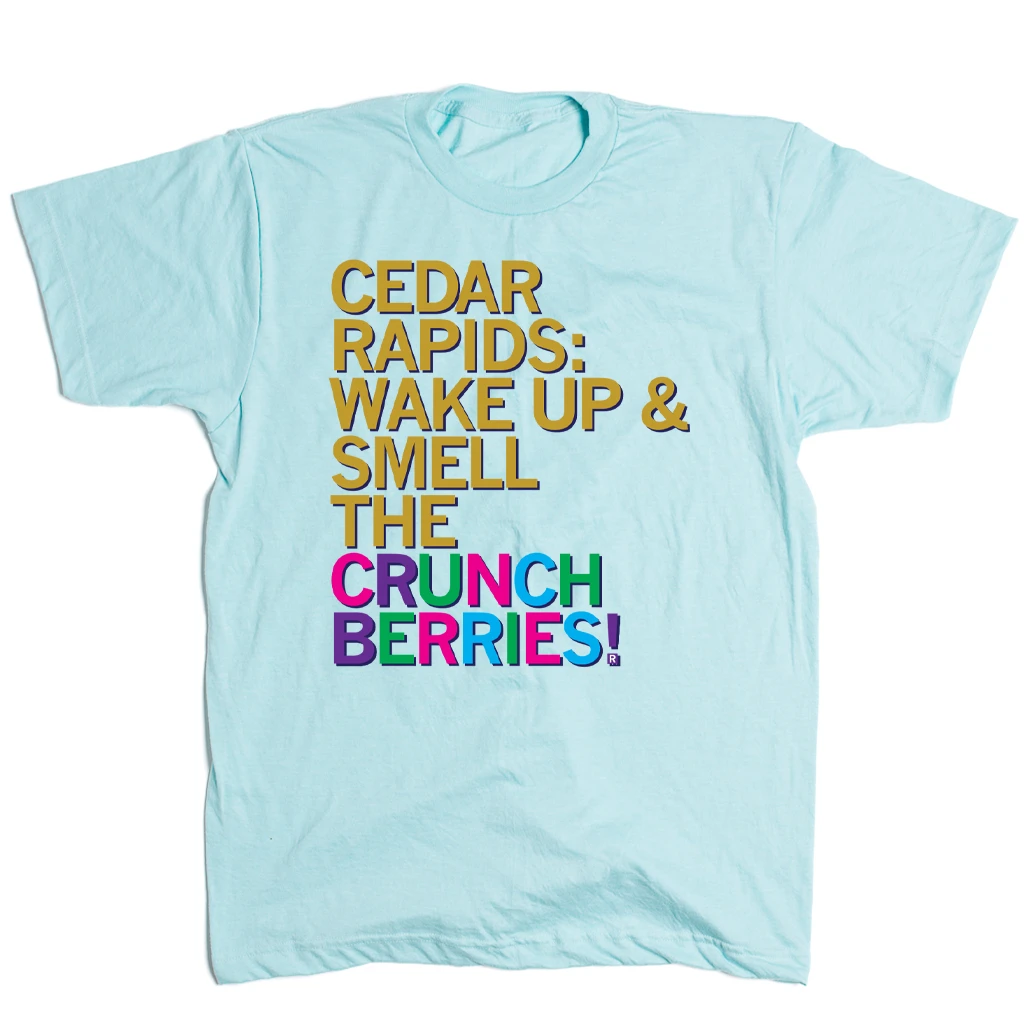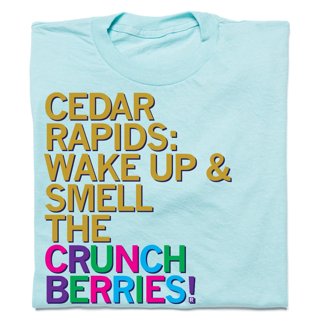 Wake up and smell the Crunch Berries. A Portion of All RAYGUN Sales Raise Money For Organizations That We Support. Heat Transfer on a Heather Purist Blue T-Shirt (50% Combed Ringspun Cotton / 50% Polyester). Cut and sewn sweatshop free. Designed and printed by Union Labor at RAYGUN.