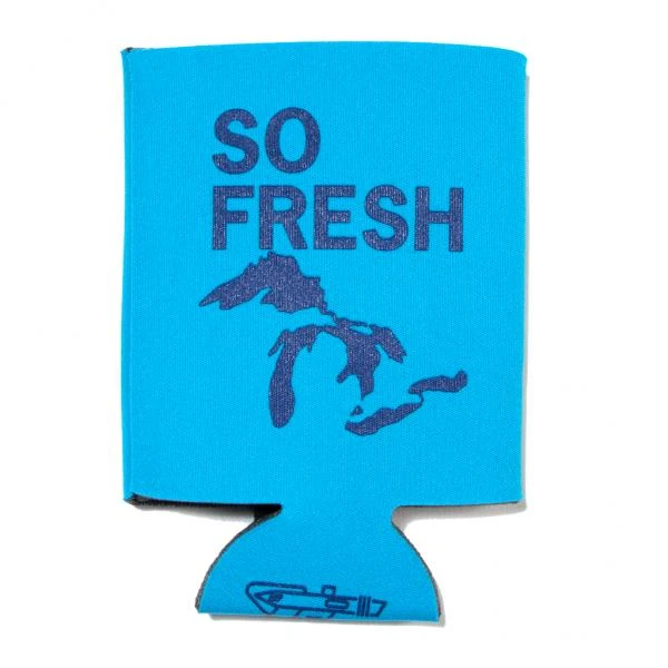 The Great Lakes: So Fresh. Some Proceeds Benefit the Alliance for the Great Lakes. RAYGUN is also a donor to the Environmental Law Policy Center, which advocates for the Great Lakes. Navy plastisol ink print on blue fade-resistant polyester covered scuba foam. Designed by RAYGUN. Imported and printed in the USA.