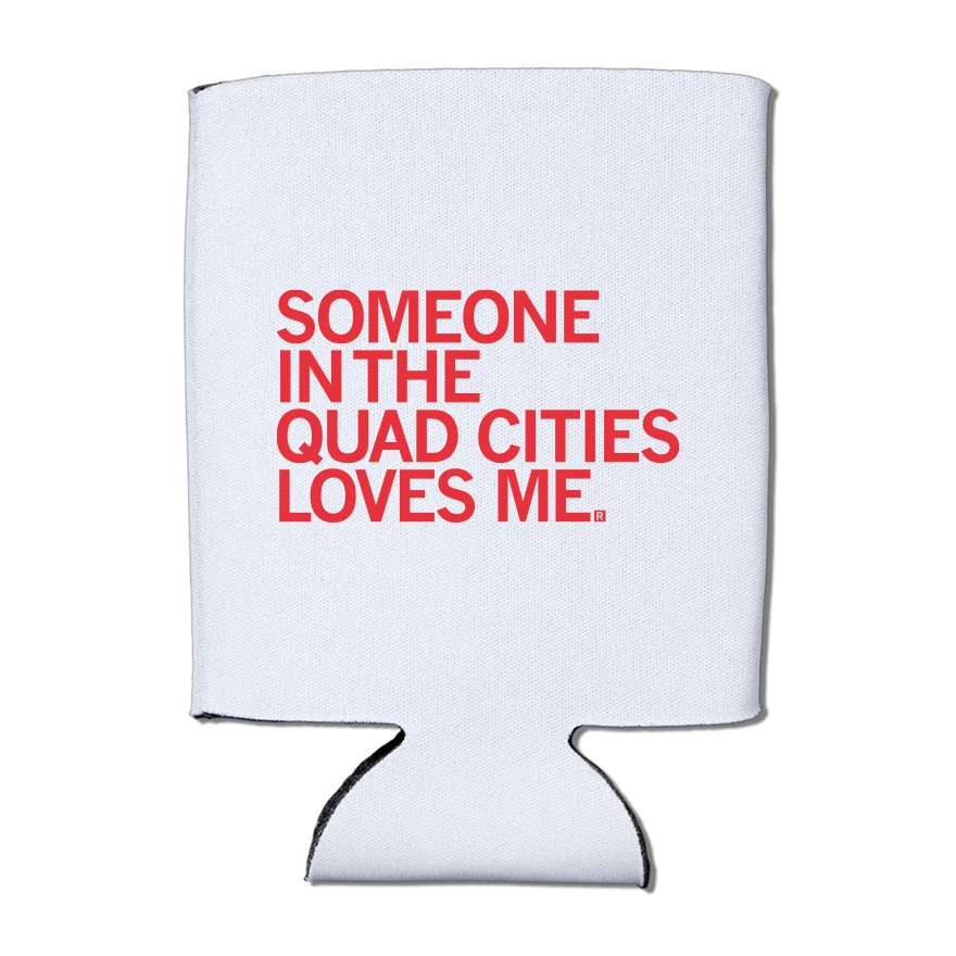Someone in The Quad Cities Loves Me. Brite Red plastisol ink print on White fade-resistant polyester covered scuba foam can cooler. A Portion of All RAYGUN Sales Raise Money For Organizations That We Support. Designed and printed by Union Labor at RAYGUN. Imported and printed in the USA.