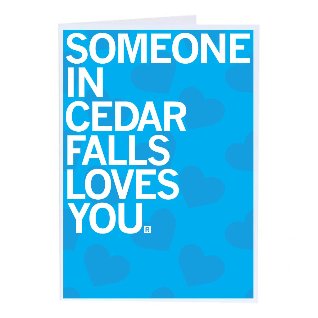 Someone In Cedar Falls Loves You. 5″ x 7″ Folded Greeting Card. Inside of the card is blank and envelope included. Designed by RAYGUN and printed by Garner Printing in Des Moines, IA.