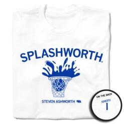 Steven Splashworth. Officially licensed with Steven Ashworth. This shirt has been approved by Steven Ashworth. A Portion of All RAYGUN Sales Raise Money For Organizations That We Support. Ultramarine Screen Print on a White T-shirt (100% Combed Ringspun Cotton). Cut & sewn sweatshop free. Designed and Printed by Union Labor at RAYGUN.