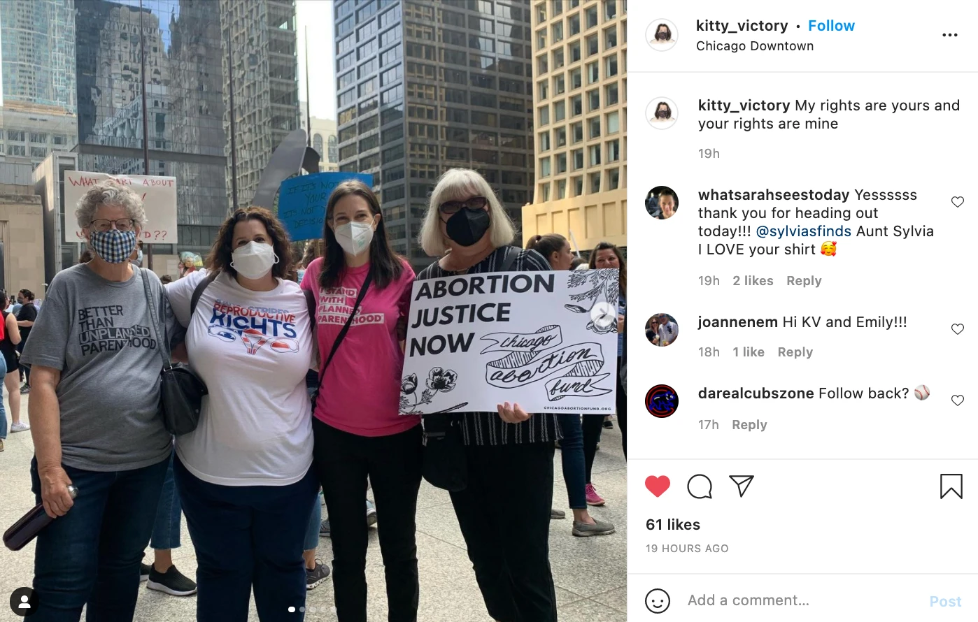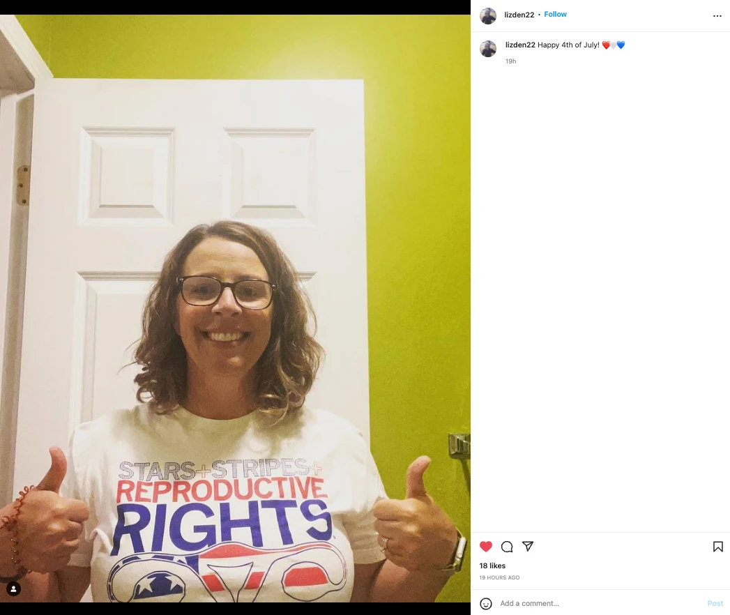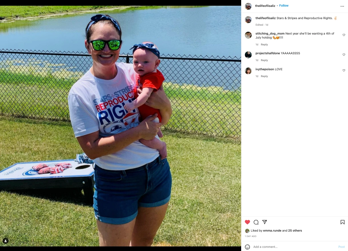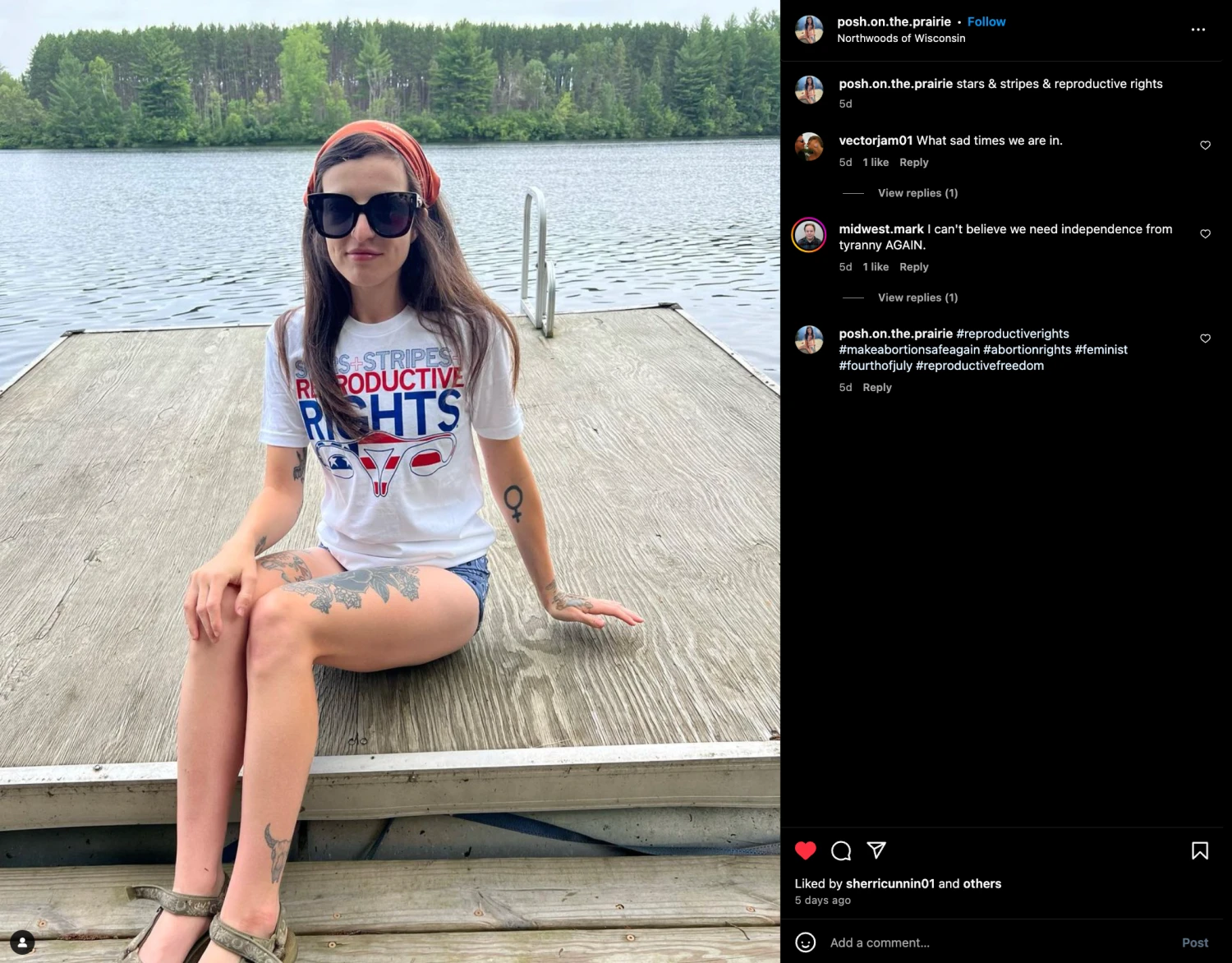 Stars, Stripes and Reproductive Rights. Some proceeds from sales go to Planned Parenthood North Central States. Royal Blue and Brite Red Screen Print on a White T-shirt (100% Combed Ringspun Cotton). Cut and sewn sweatshop free. Designed and printed by Union Labor at RAYGUN.