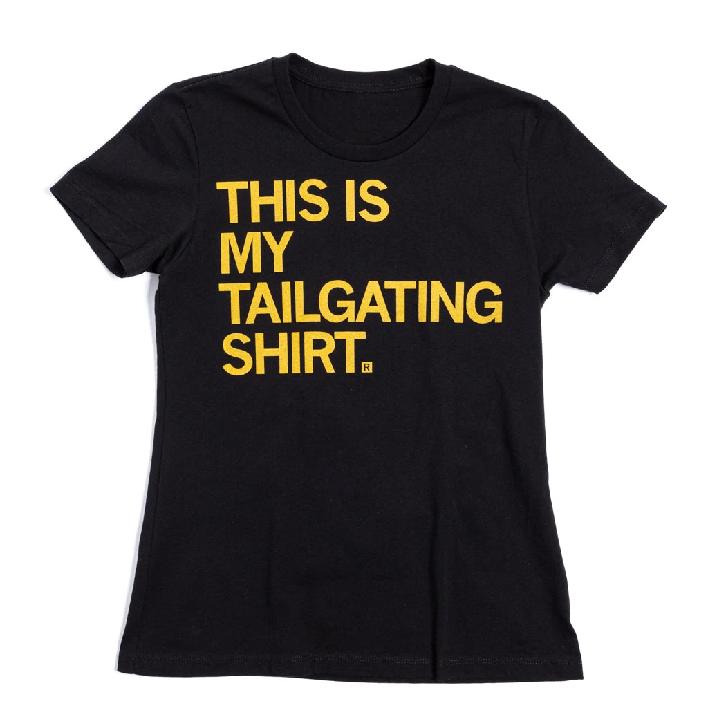 This Is My Tailgating Shirt. A Portion of All Raygun Sales Raise Money For Organizations That We Support. Gold Screen Print on a Black T-shirt (100% Combed Ringspun Cotton). Cut and sewn sweatshop free. Designed and printed by Union Labor at RAYGUN.