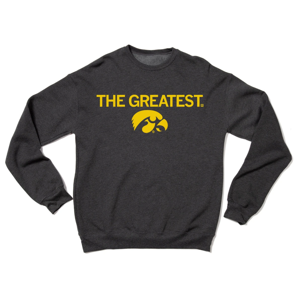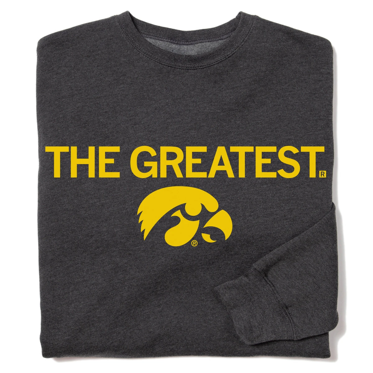 The Greatest – Tigerhawk. A Portion of All RAYGUN Sales Raise Money For Organizations That We Support. Gold screen print on charcoal heather sweatshirt (55% Combed Ringspun Cotton / 45% Polyester). Cut and sewn sweatshop free. Designed and printed by Union Labor at RAYGUN.