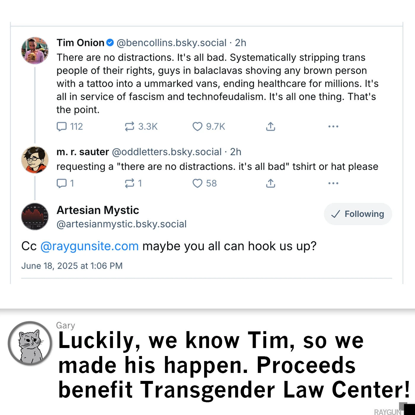 Designed and Printed by Union Labor at RAYGUN. Cut & sewn sweatshop free. A Portion of Proceeds go to the Transgender Law Center.
