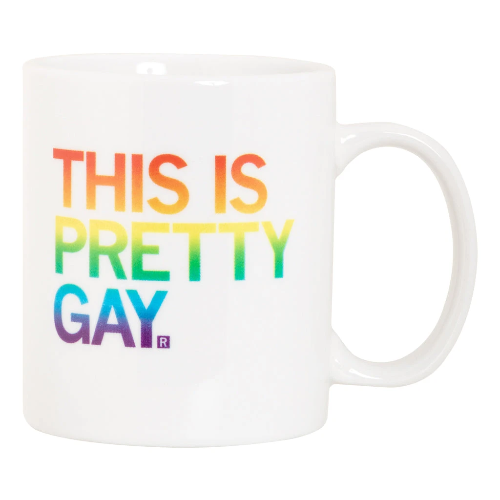 This Is Pretty Gay. 11 oz Mug. Fade resistant and dishwasher safe. Designed by RAYGUN and printed by PyroGraphics in Des Moines, IA.