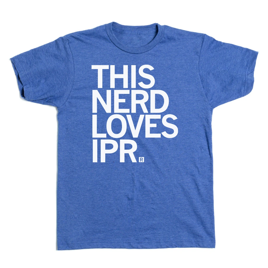 This Nerd Loves IPR. Officially licensed Iowa Public Radio merchandise with a percentage of sales going to IPR. White Screen Print on a Heather Royal T-shirt (50% Combed Ringspun Cotton / 50% Polyester). Cut & sewn sweatshop free. Designed and Printed by Union Labor at RAYGUN.