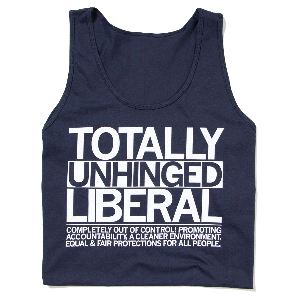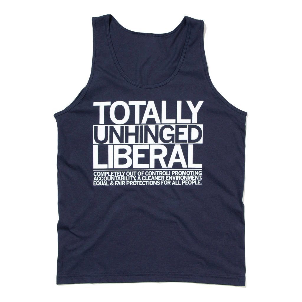 Completely Out Of Control Promoting Accountability, A Cleaner Environment, Equal And Fair Protections For All People. White Screen Print on a Navy Tank Top (100% Combed Ringspun Cotton). Cut and sewn sweatshop free. Designed and printed by Union Labor at RAYGUN.