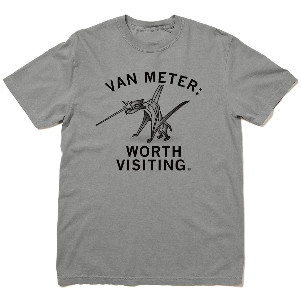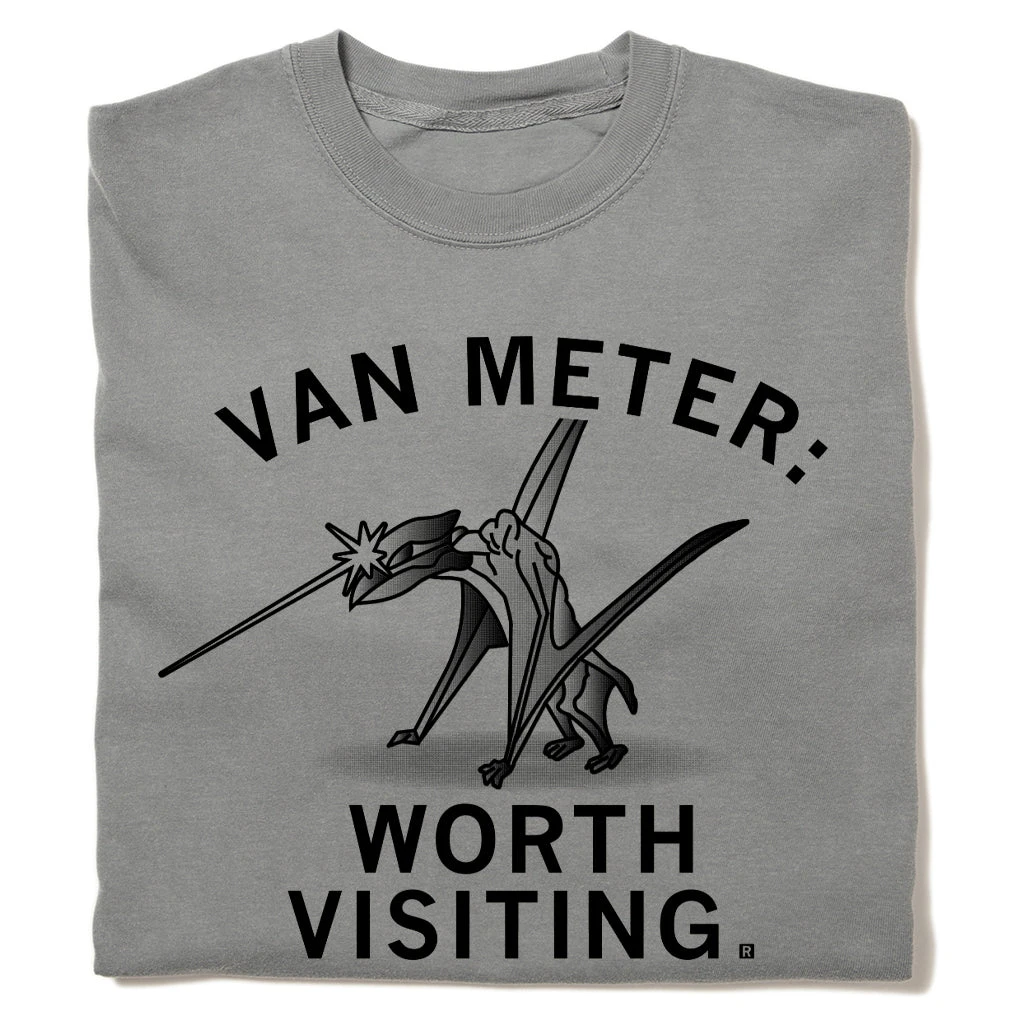 Van Meter, Worth Visiting. A Portion of All RAYGUN Sales Raise Money For Organizations That We Support. Black Screen Print on a Garment-Dyed Heavyweight Grey T-shirt (100% Combed Ringspun Cotton Heavyweight). Cut & sewn sweatshop free. Designed and Printed by Union Labor at RAYGUN.