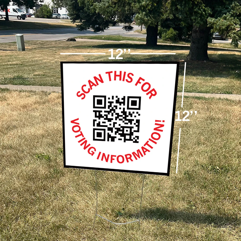 Scan this sign for voting information then go vote. A Portion of All RAYGUN Sales Raise Money For Organizations That We Support. 12″ x 12″ Chloroplast Yard Sign with 10″ x 14″ Metal Stake. Designed by RAYGUN and made in Des Moines, IA.