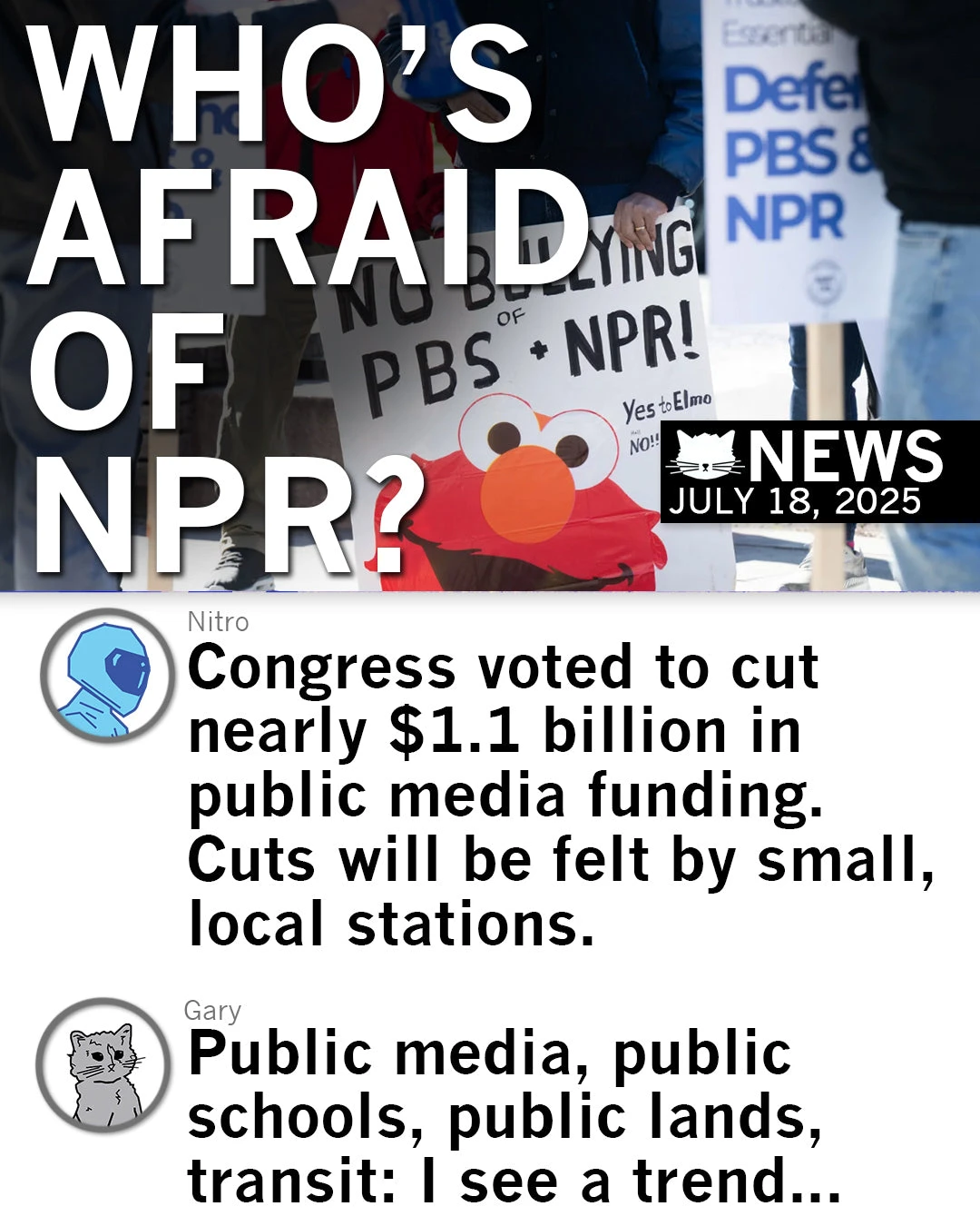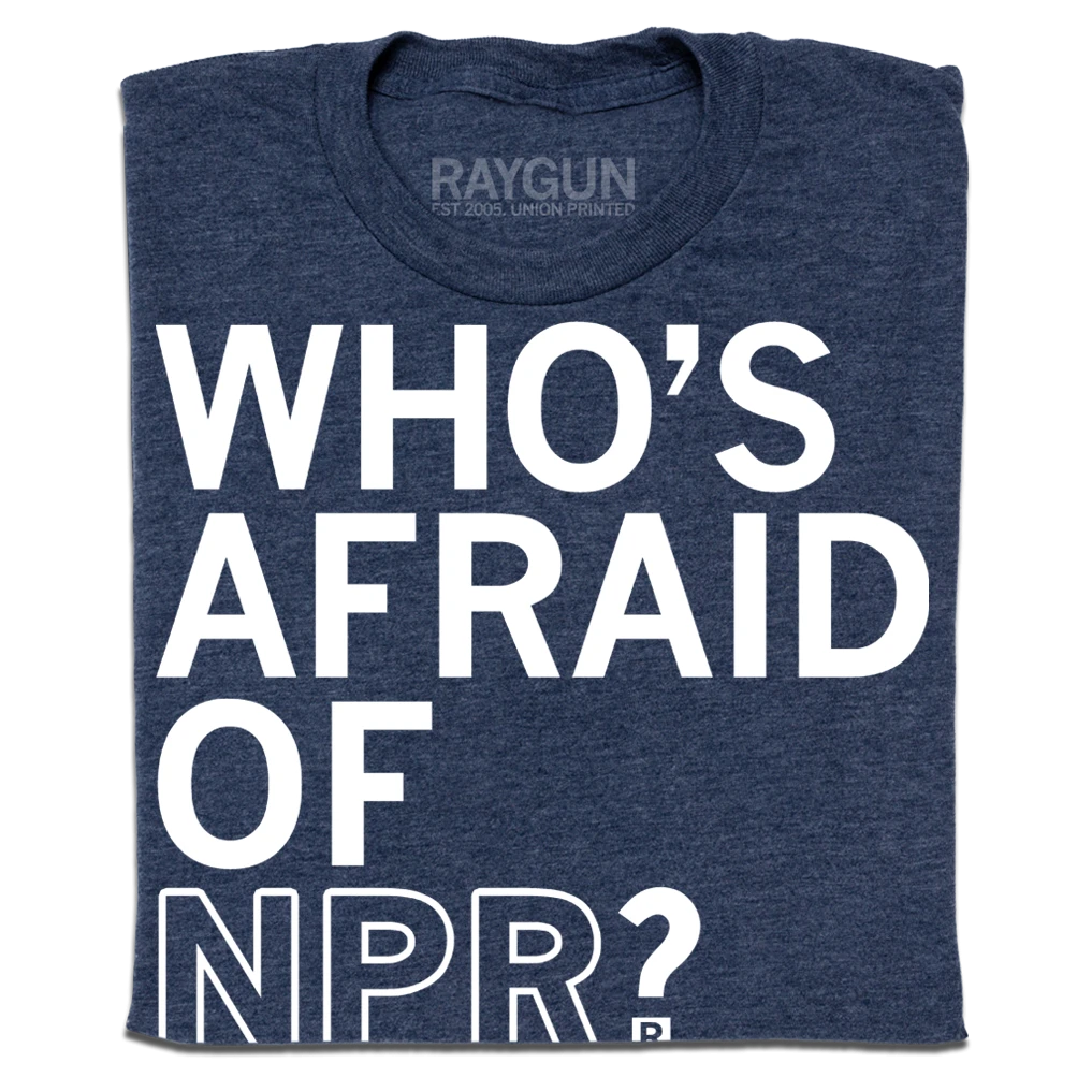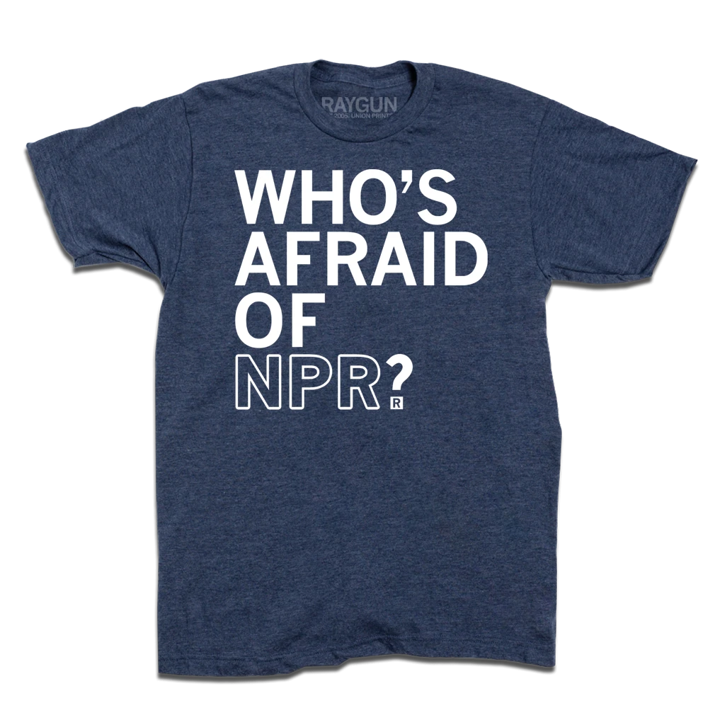 Who is afraid of NPR? Who is afraid of Public Media? Officially licensed with NPR, meaning a portion of sales goes to support programming. More RAYGUN designed or printed products are available at NPR.org.