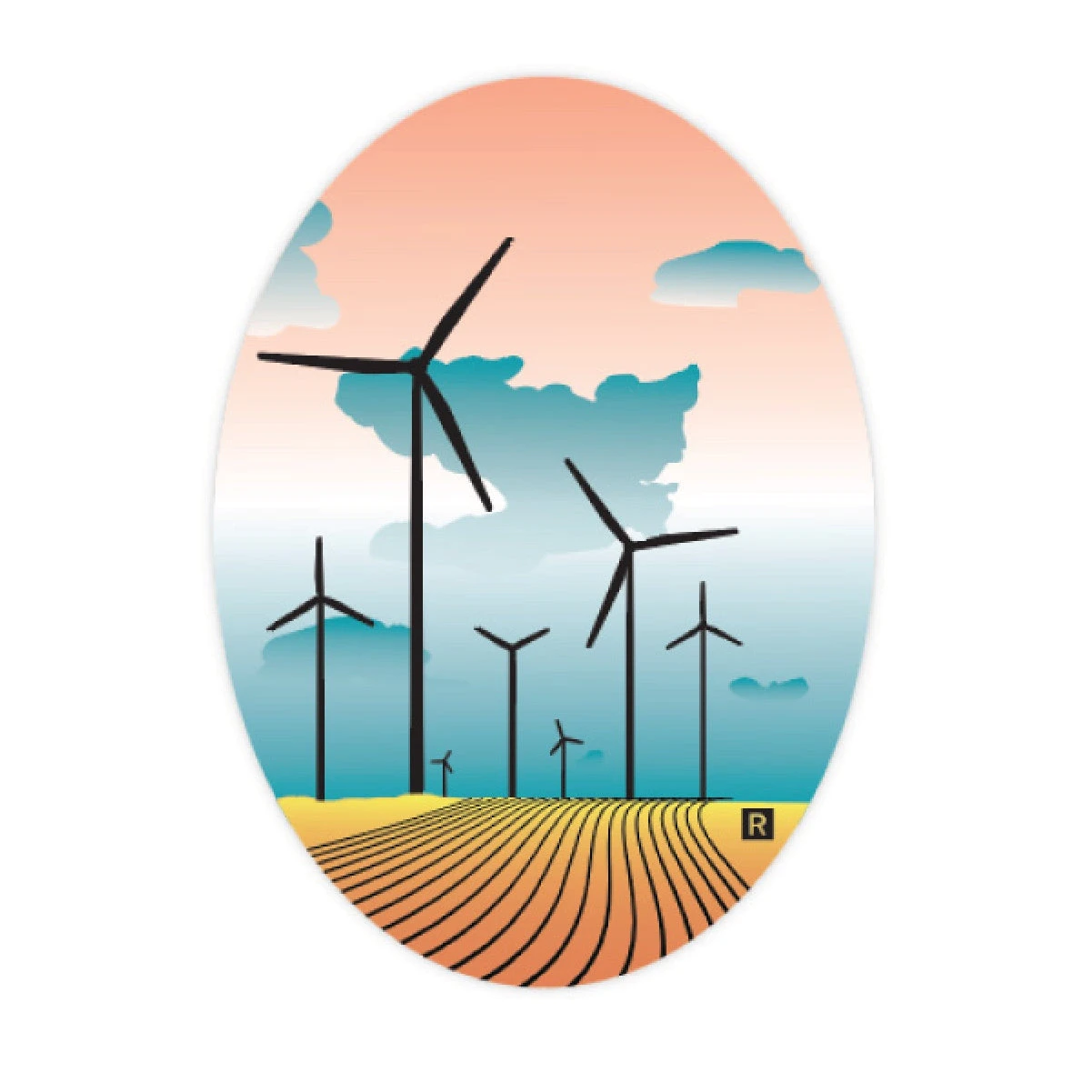 Wind Farms for Days. Die-Cut Vinyl sticker. Designed by RAYGUN and printed by Sinclair Graphics in Des Moines, IA.