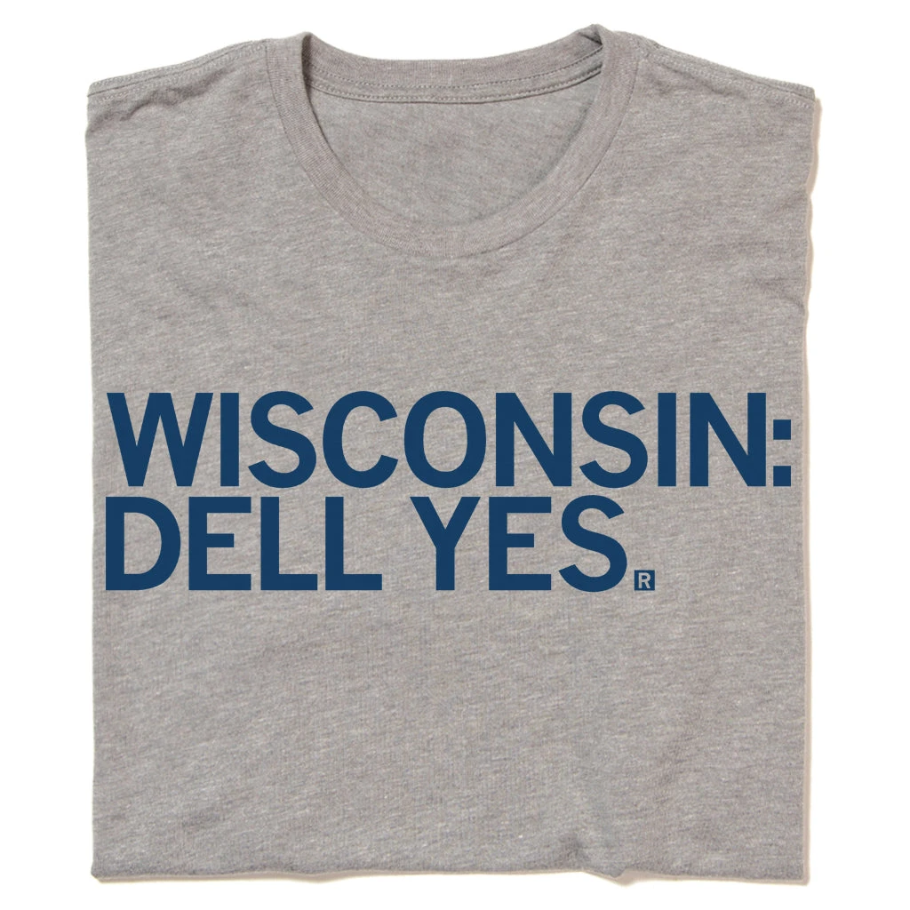 Wisconsin: Dell Yes. A Portion of All RAYGUN Sales Raise Money For Organizations That We Support. This Design Has Been Retired and is No Longer Available on Our Sales Floors But Can Be Ordered Here Online! Since All of Our Retired Designs Are Printed on Demand, Please Allow For a Couple Extra Days Before Shipping. Navy Blue Screen Print on a Heather Grey T-shirt (65% Polyester / 35% Combed Ringspun Cotton). Cut and sewn sweatshop free. Designed and printed by Union Labor at RAYGUN.