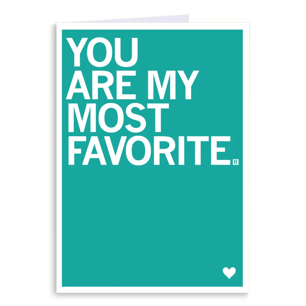 You Are My Most Favorite. A Portion of All RAYGUN Sales Raise Money For Organizations That We Support. 5″ x 7″ Folded Greeting Card. Inside of the card is blank and envelope included. Designed by RAYGUN and printed by union labor at Garner Printing in Des Moines, IA.