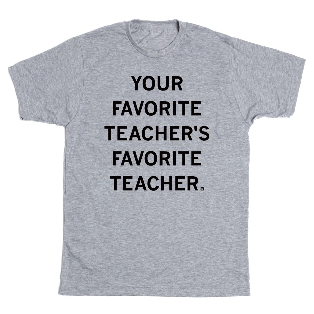 Your Favorite Teacher’s Favorite Teacher. A Portion of All RAYGUN Sales Raise Money For Organizations That We Support. Black Screen Print on a Heather Grey T-shirt (65% Polyester / 35% Combed Ringspun Cotton). Cut & sewn sweatshop free. Designed and Printed by Union Labor at RAYGUN.